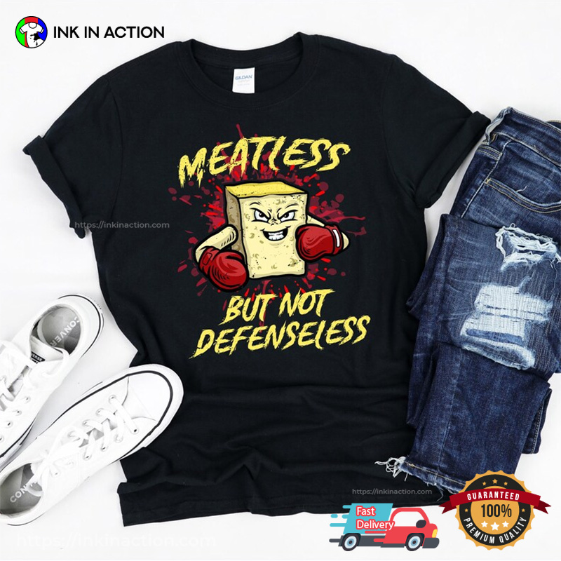 Are you ready to celebrate the holiday season with style and ease? Look no further! Our Meatless But Not Defenseless, Vegan Warrior T-shirt, printed right here in the USA, offers affordable and practical options that will make your life stress-free and your celebrations unforgettable.