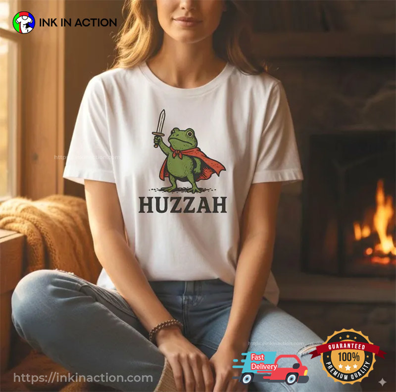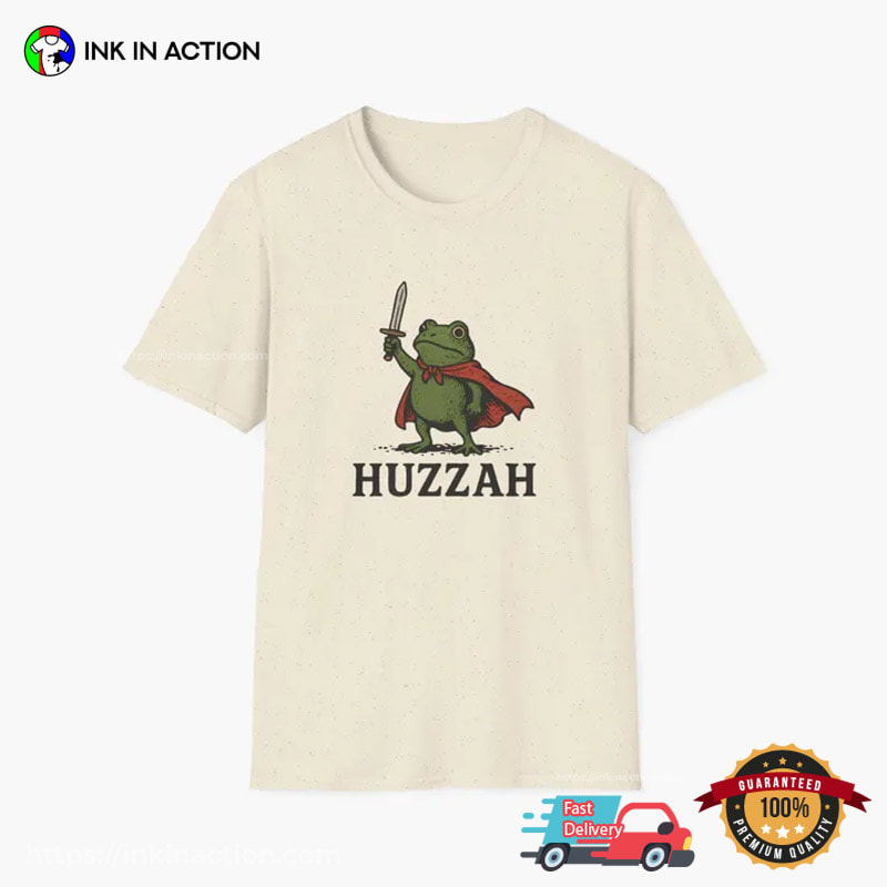 Our team prints each Medieval Fantasy Huzzah Frog Knight Meme Shirt carefully. Our shirts are always soft and durable since we print with high-quality, water-based inks and employ traditional hand-screen printing procedures.