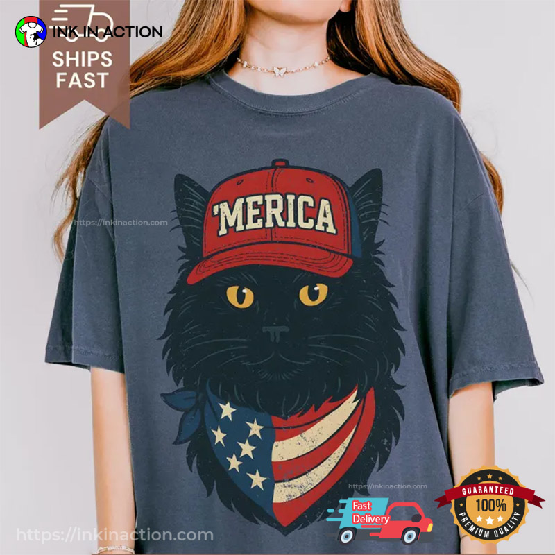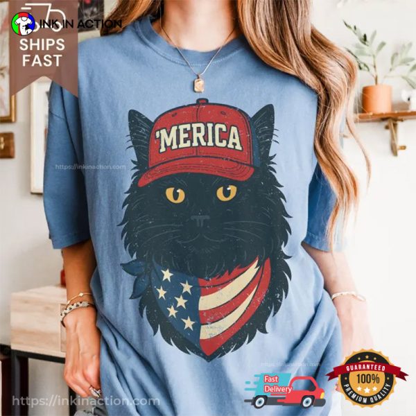 Don’t wait! Visit InkInAction.com today and explore our Merica Patriotic Black Cat 4th July Comfort Colors T-shirt. Celebrate, enjoy, and create unforgettable moments with our affordable and stylish options. Let us be a part of your holiday journey,