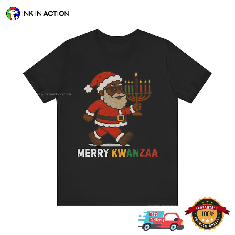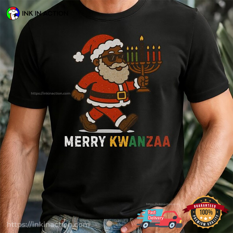 Are you ready to celebrate the holiday season with style and ease? Look no further! Our Merry Kwanzaa Funny Black Santa Kwanzaa Candles Shirt, printed right here in the USA, offers affordable and practical options that will make your life stress-free and your celebrations unforgettable.