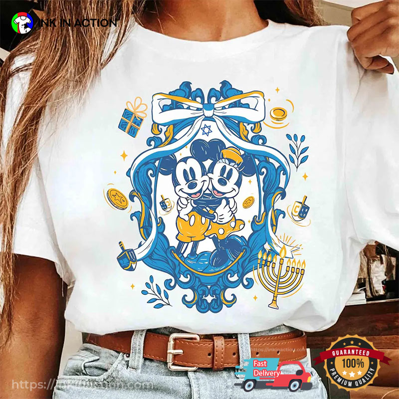 Celebrate the season of light with this festive Mickey And Minnie Disney Hanukkah Comfort Colors Shirt, perfect for sharing joy and tradition. Crafted from soft, high-quality cotton, it offers comfort and style for every celebration. Whether at family gatherings or holiday parties, this tee lets you wear your Hanukkah spirit with pride and warmth.