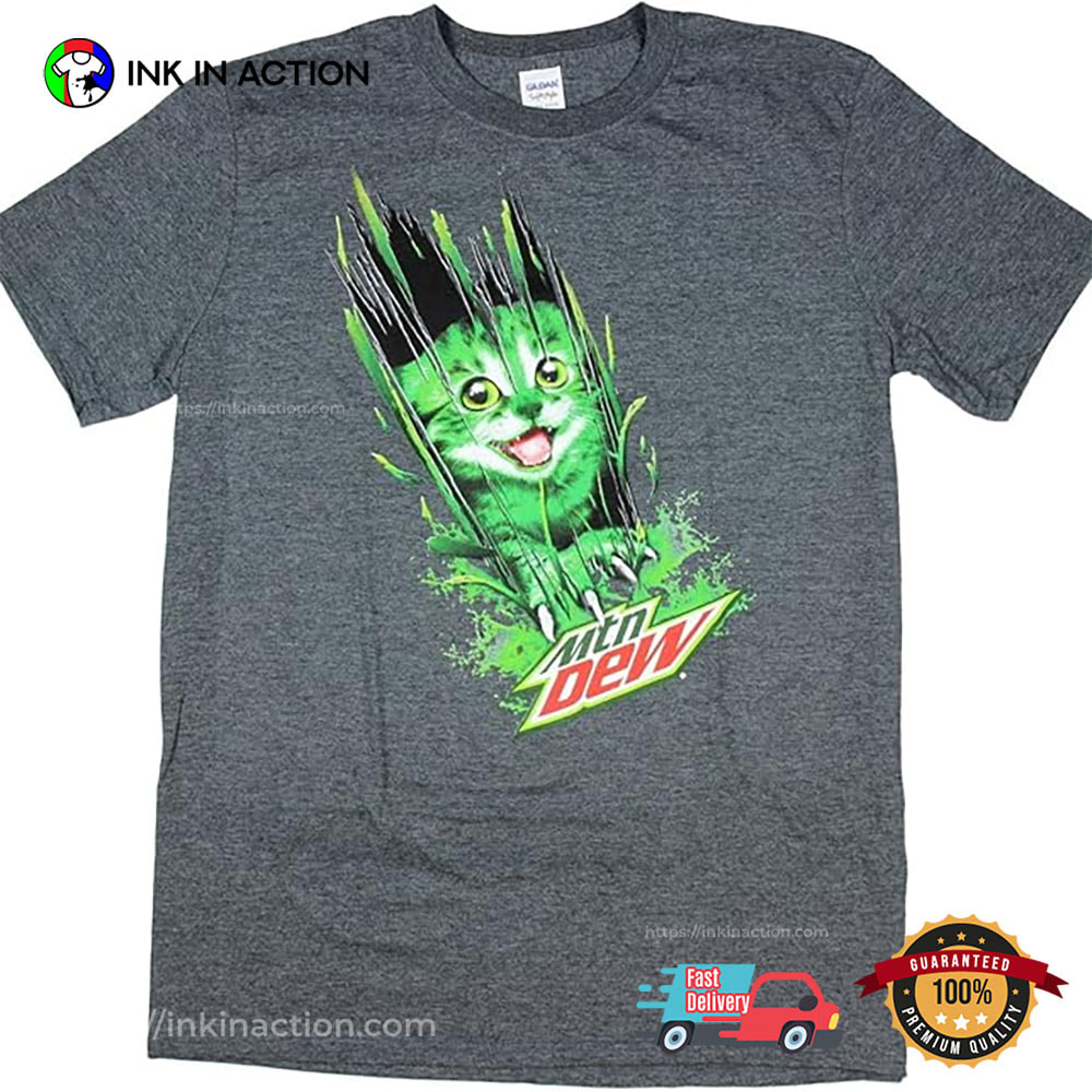 In the ever-evolving fashion world, staying on trend is not just a choice; it’s a statement. Our Mountain Dew Kitty Cat Ripping Through Graphic T-Shirt are more than garments; they are canvases of self-expression, reflecting the spirit of the times. We understand that fashion is a language, and our trending shirts speak volumes.