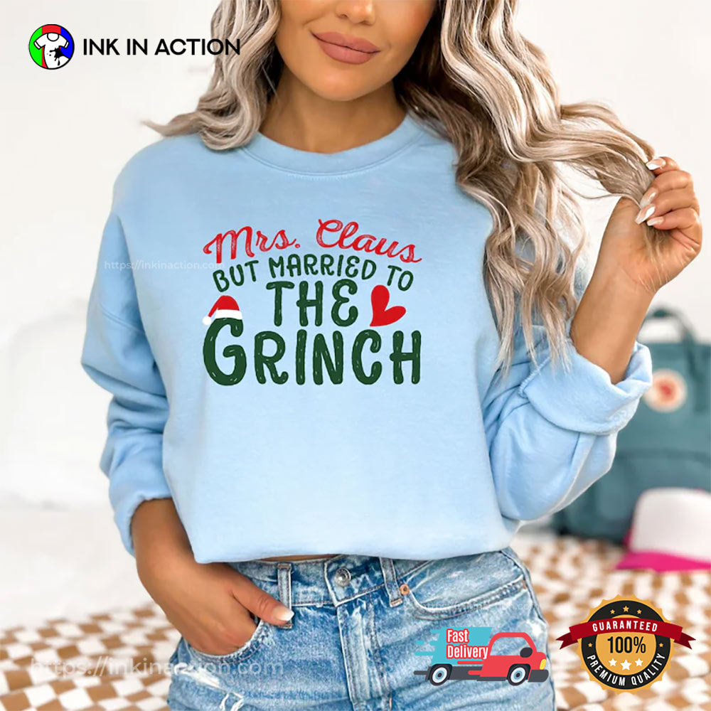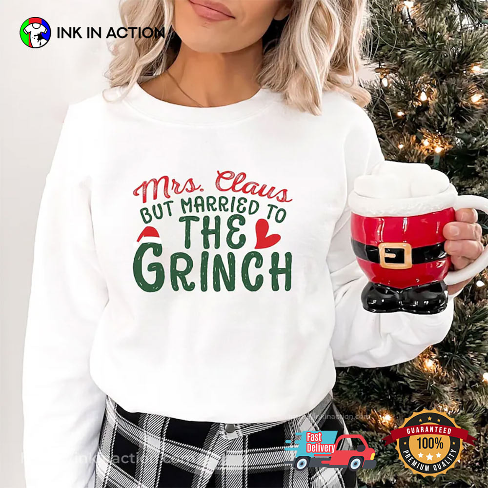 Mrs Clause Married To The Grinch Retro Christmas Shirt