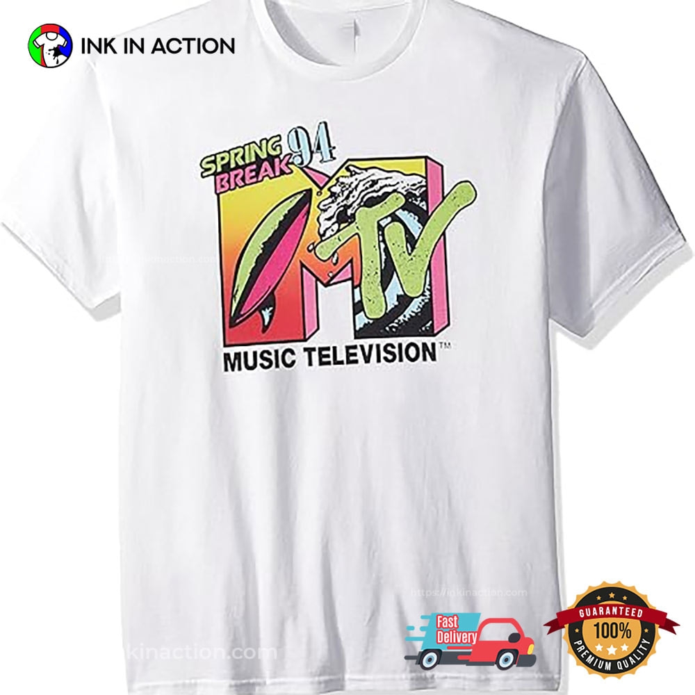 Attention music lovers, let’s check out our MTV Men’s Springbreak 94 Logo T-shirt, proudly printed in the USA by InkInAction.com. With its unique and eye-catching design, this shirt is sure to turn heads and start conversations.