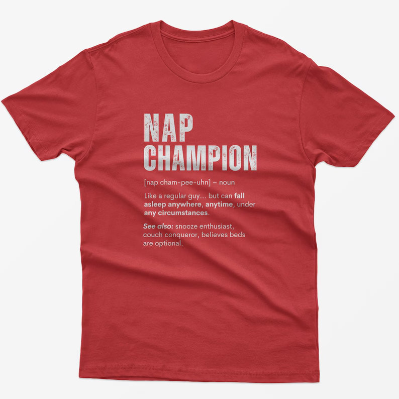 Are you ready to celebrate the holiday season with style and ease? Look no further! Our Nap Champion Funny Sleep Lover Gift T-shirt, printed right here in the USA, offers affordable and practical options that will make your life stress-free and your celebrations unforgettable.