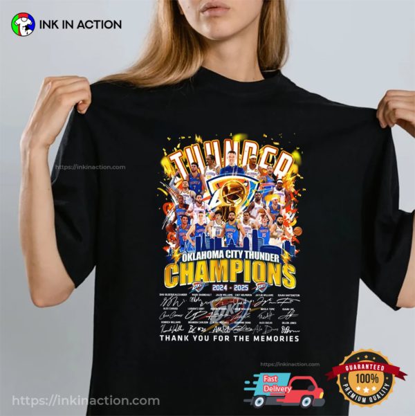 Welcome to Ink In Action, your go-to print-on-demand website for the NBA Oklahoma City Thunder Champions 2025 Signatures T-shirt. We offer a wide selection of sports shirts for various sports enthusiasts, from golfers to basketball fans.