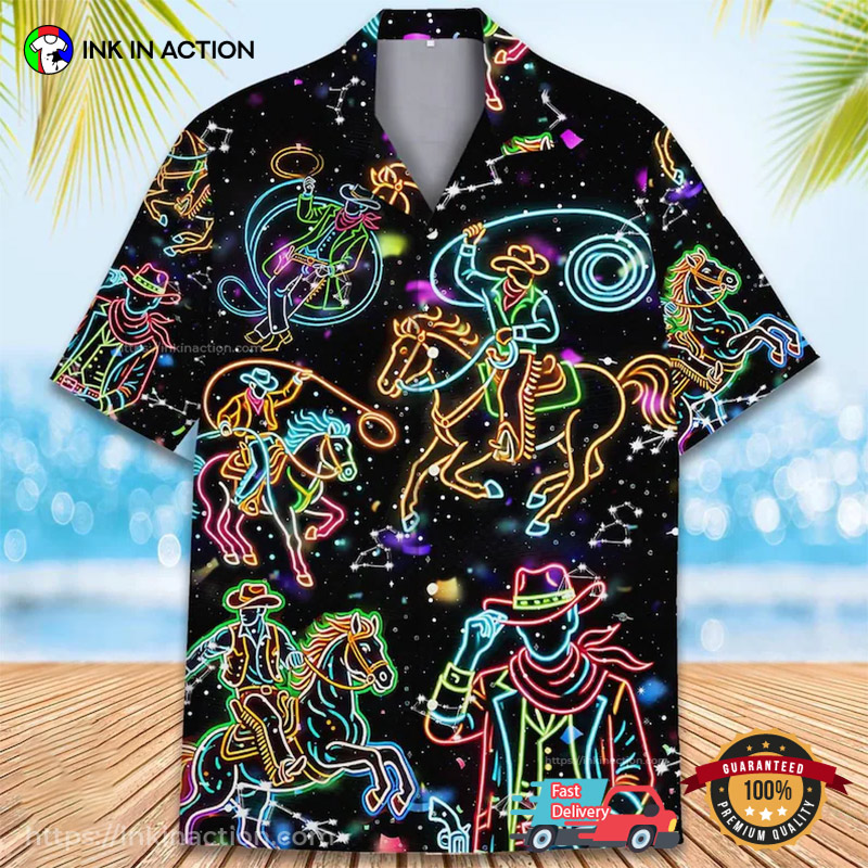 Bring the Aloha spirit everywhere you go with our Neon Cowboy Rodeo Hawaii Shirt! InkInAction.com is your ultimate destination for vibrant and stylish Hawaiian shirts that capture the essence of tropical paradise!