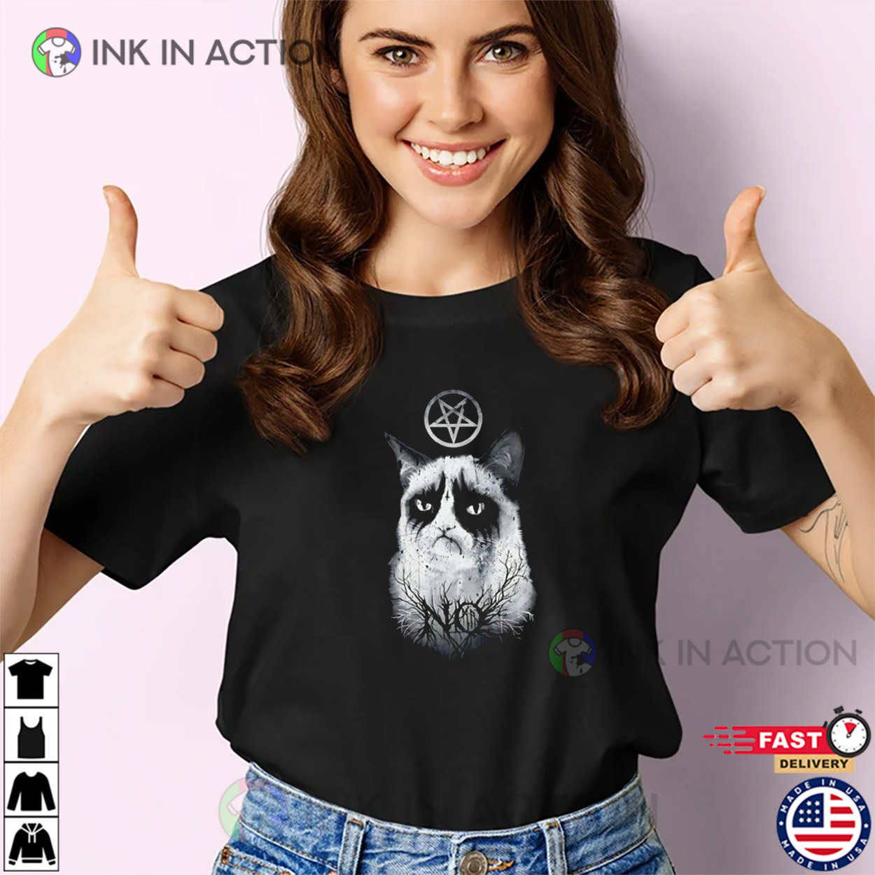 Looking for a statement piece that keeps you stylish and comfortable all year round? Our No Grumpy Cat Darkness Graphic Tee is designed for those who love to stand out and express themselves through fashion-forward designs, pop culture references, and iconic graphics.