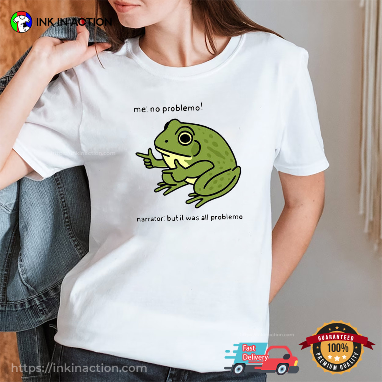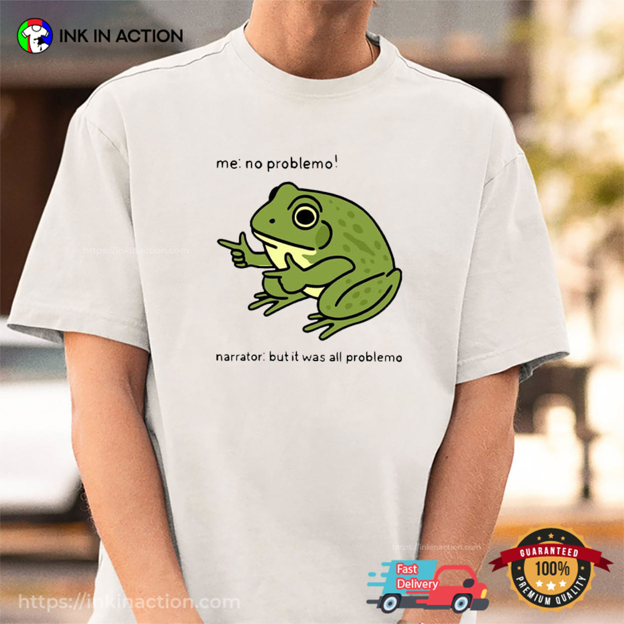 Our team prints each No Problemo Funny Frog Meme T-shirt carefully. Our shirts are always soft and durable since we print with high-quality, water-based inks and employ traditional hand-screen printing procedures.