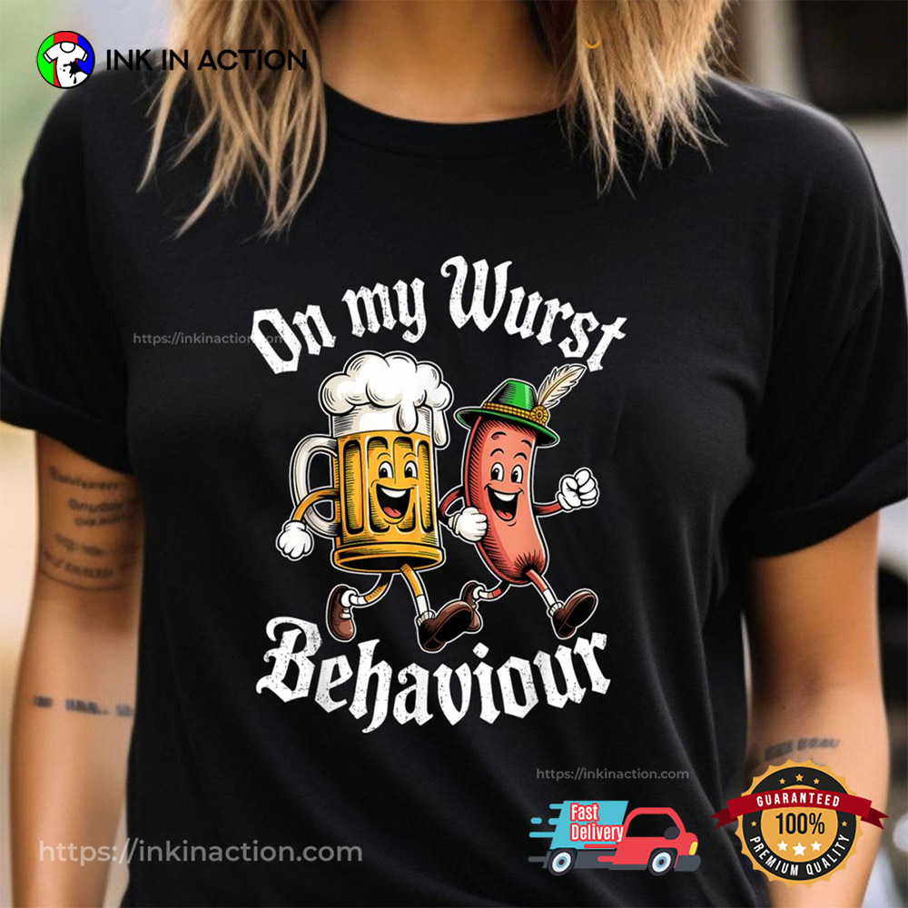 Are you ready to celebrate the holiday season with style and ease? Look no further! Our Oktoberfest On My Wurst Behaviour T-shirt, printed right here in the USA, offers affordable and practical options that will make your life stress-free and your celebrations unforgettable.