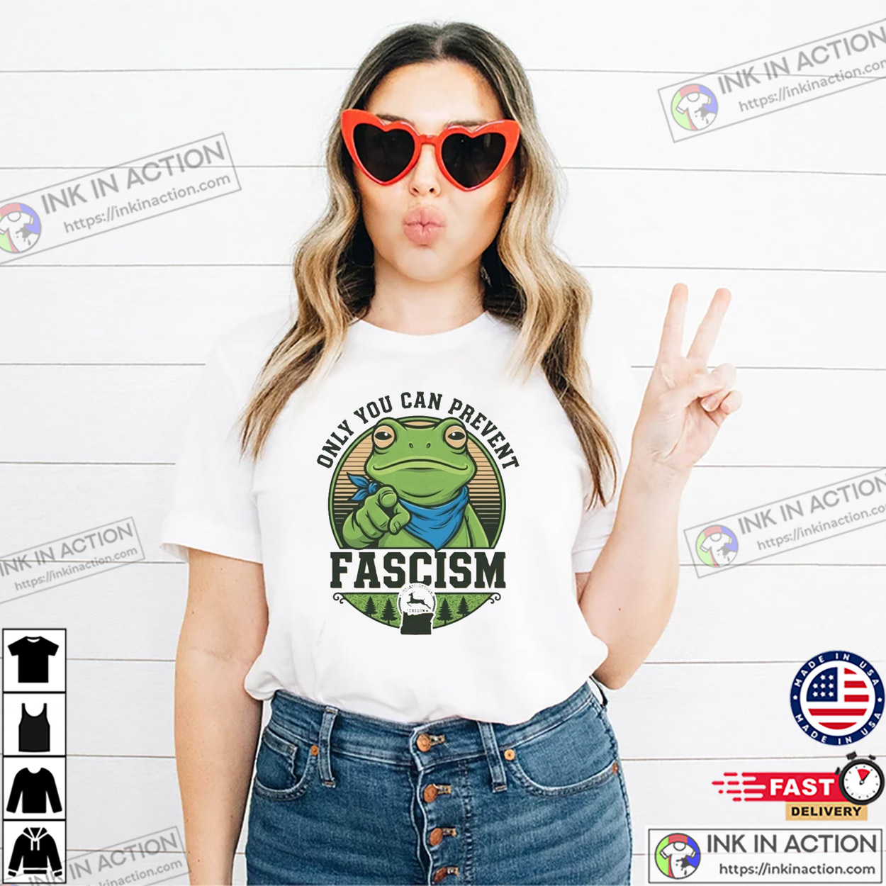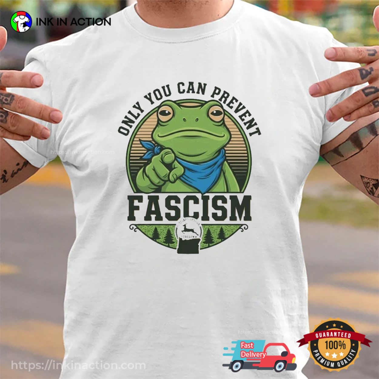 Looking for a statement piece that keeps you stylish and comfortable all year round? Our Only You Can Prevent Fascism Portland Frog T-shirt is designed for those who love to stand out and express themselves through fashion-forward designs, pop culture references, and iconic graphics.