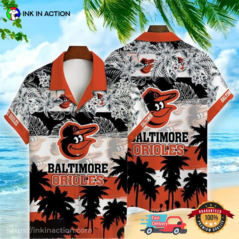 Bring the Aloha Spirit everywhere you go with Ink In Action’s Palm Tree Pattern Orioles MLB Hawaiian Shirt!