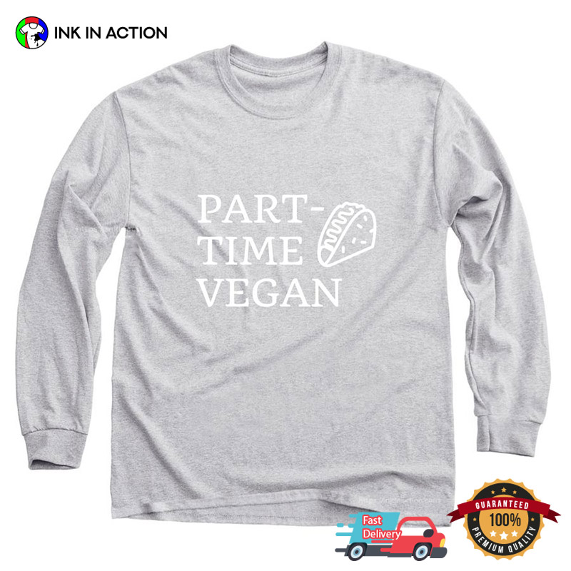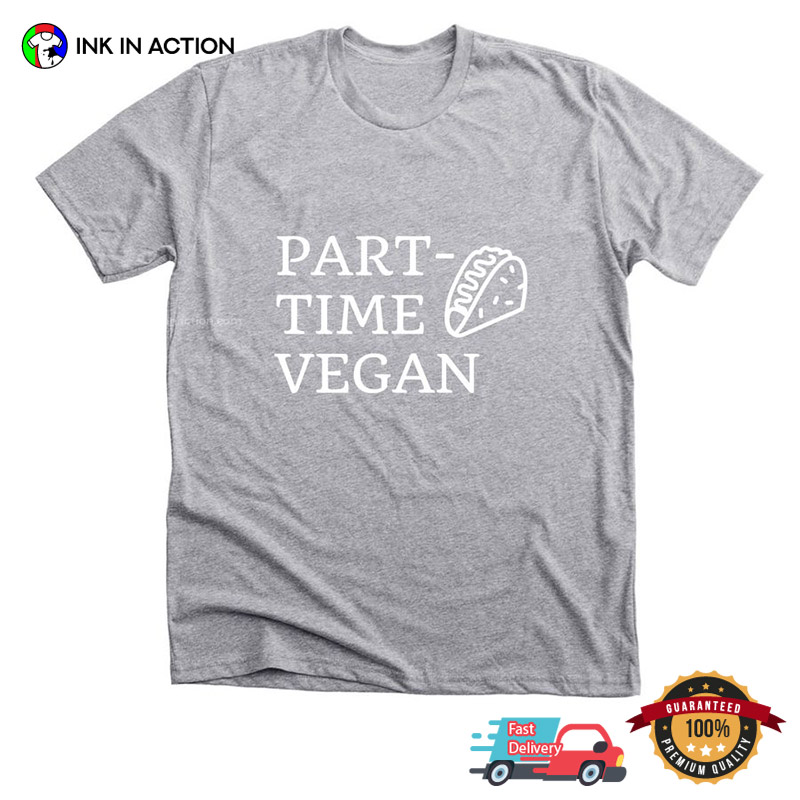 Are you ready to celebrate the holiday season with style and ease? Look no further! Our Part-Time Vegan Taco Lover T-shirt, printed right here in the USA, offers affordable and practical options that will make your life stress-free and your celebrations unforgettable.