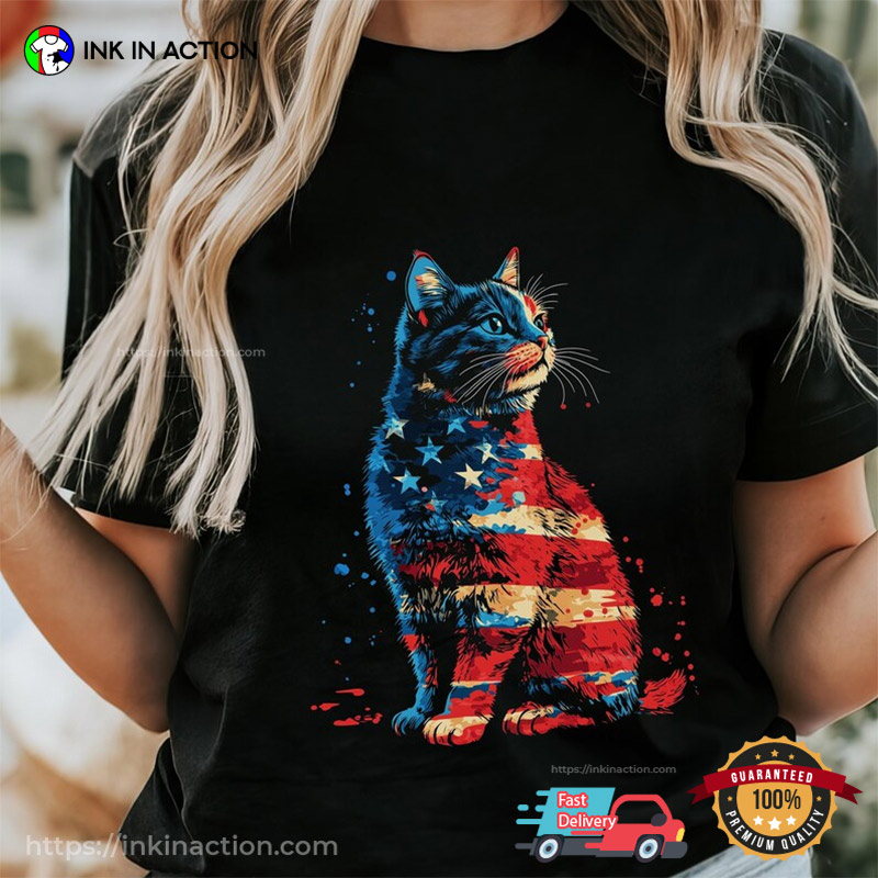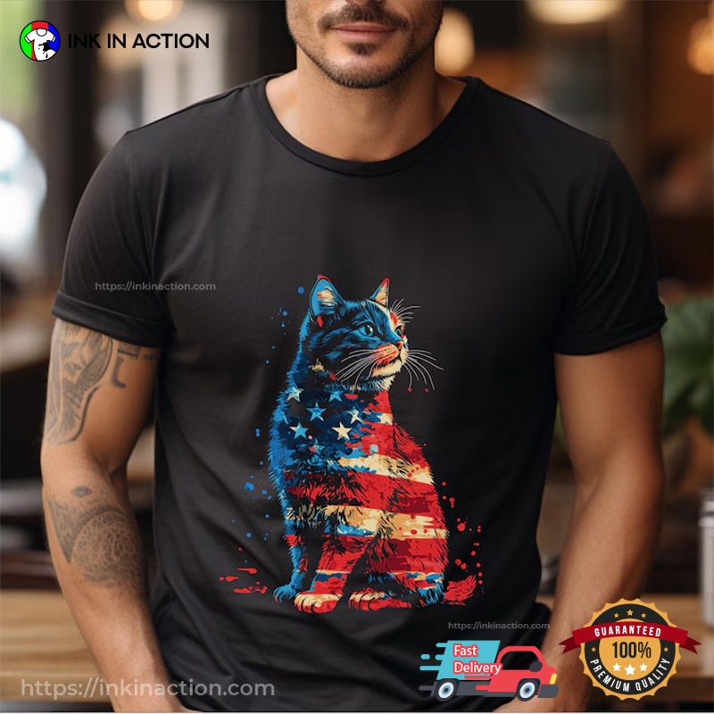 Patriotic Cat American Flag Art Tee: Purrfection You Can Wear!