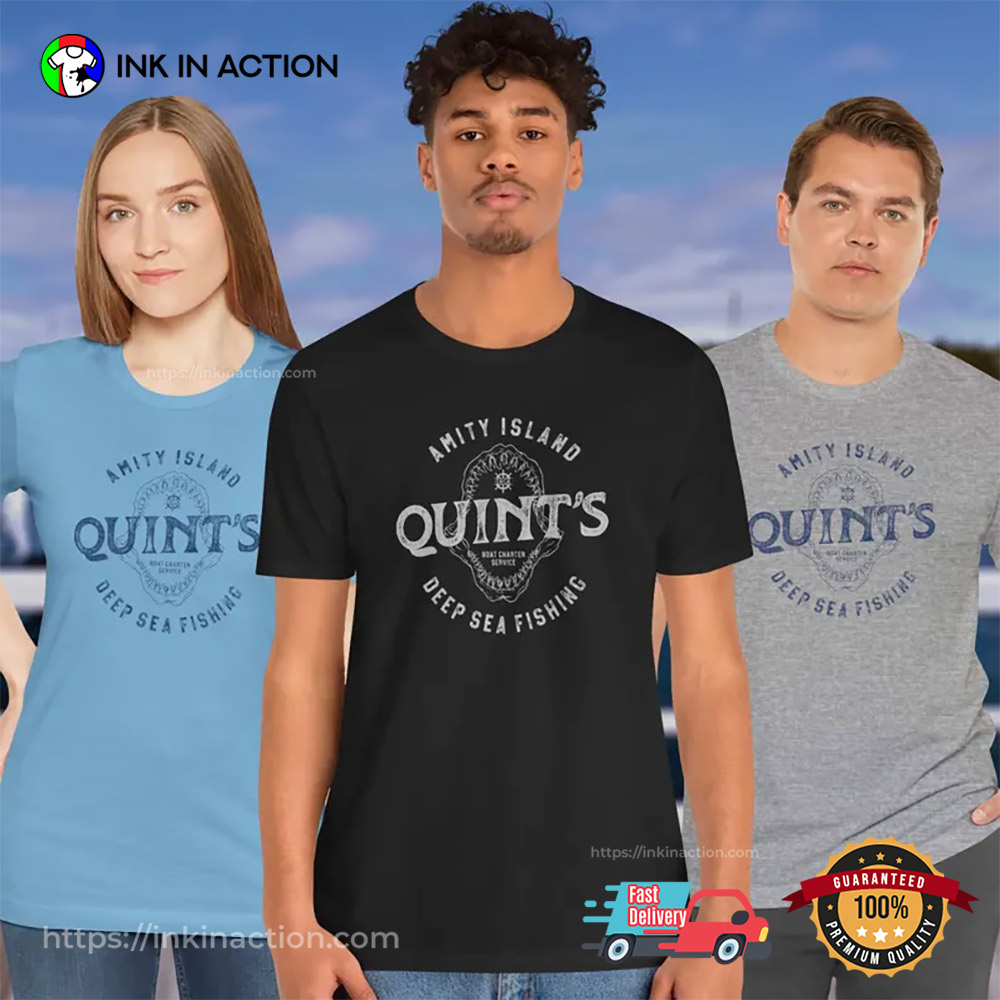 Celebrate five decades of cinematic terror with our Personalize Jaws Quint’s Deep Sea Fishing T-shirt, honoring the iconic 1975 blockbuster that redefined thrillers. Featuring a bold, vintage-inspired design, this tee is perfect for movie buffs, Shark Week fans, and lovers of classic cinema.