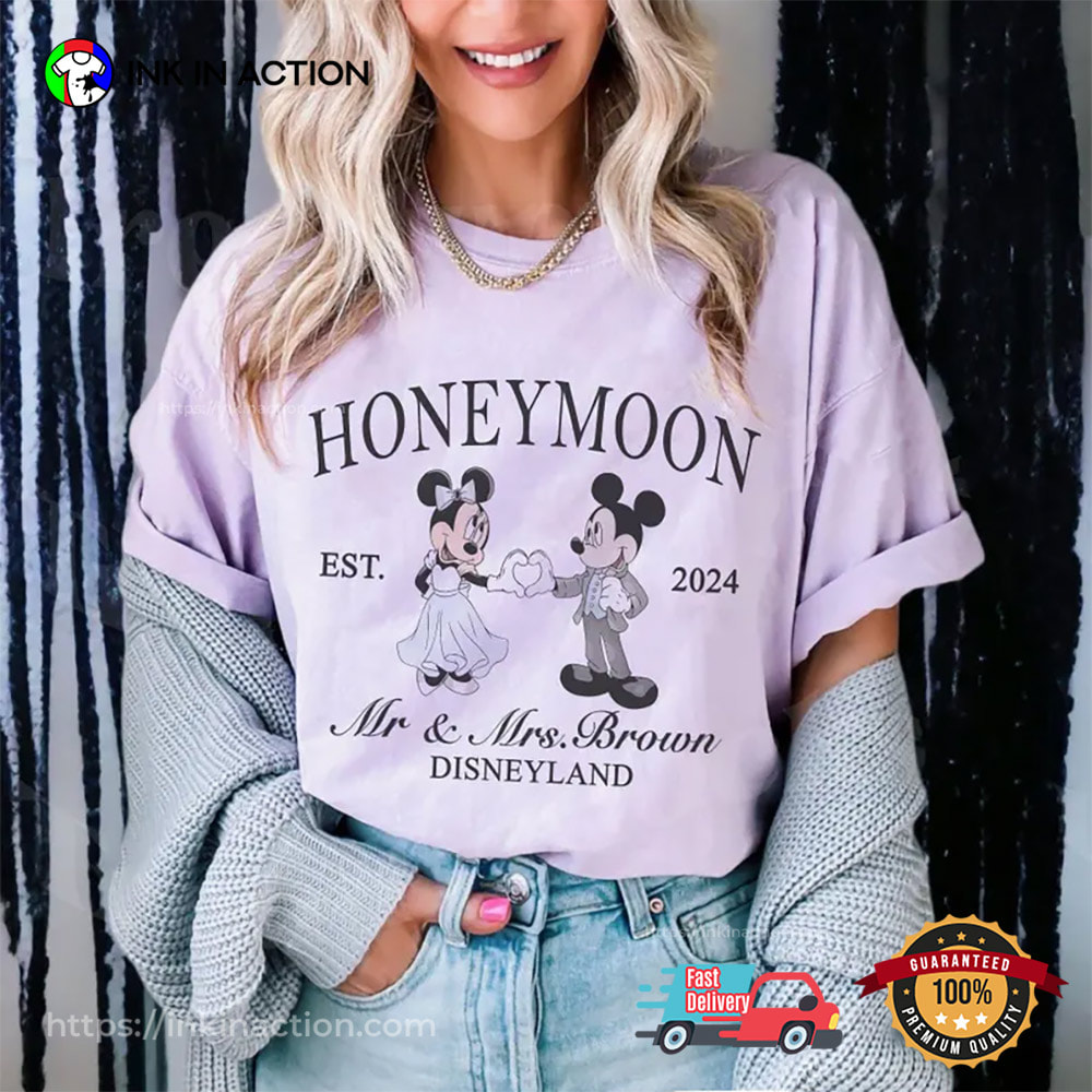 In the ever-evolving fashion world, staying on trend is not just a choice; it’s a statement. Our Personalized Disney Honeymoon Club Just Married Disney T-shirt are more than garments; they are canvases of self-expression, reflecting the spirit of the times. We understand that fashion is a language, and our trending shirts speak volumes.