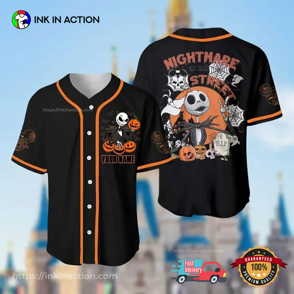 Personalized Jack Skellington Nightmare On Main Street Halloween Baseball Jersey