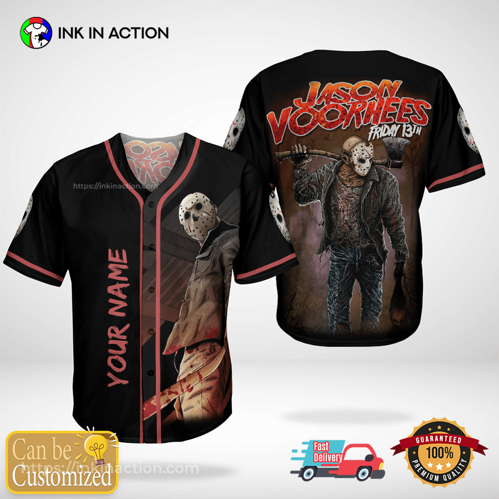 Welcome to Ink In Action, your ultimate destination for custom baseball jerseys that transcend the ordinary. With a decade of working with sports shirts, we would like to walk you through the thrilling world of custom baseball clothing and get you ready to hit a home run with a Personalized Jason Voorhees Friday 13th baseball Jersey!