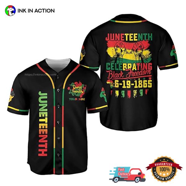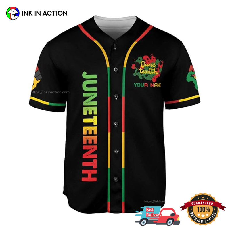 Welcome to Ink In Action, your ultimate destination for custom baseball jerseys that transcend the ordinary. With a decade of working with sports shirts, we would like to walk you through the thrilling world of custom baseball clothing and get you ready to hit a home run with Ink In Action’s Personalized Juneteenth Breaking Every Chain Since 1865 Baseball Jersey!