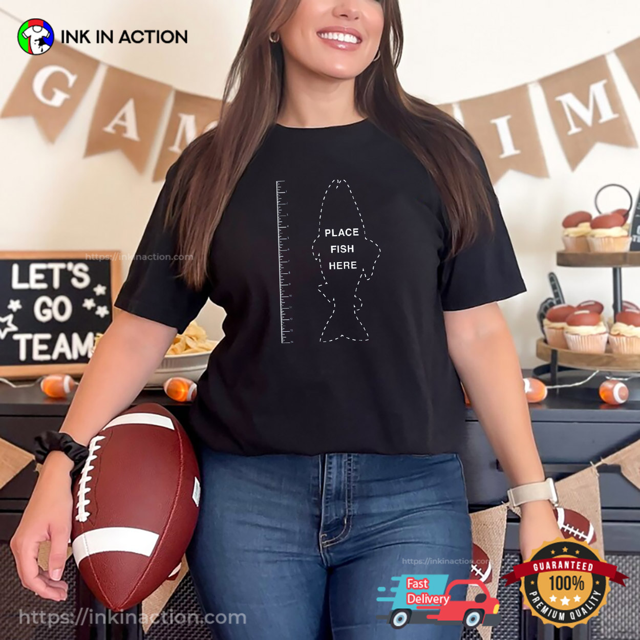 Looking for a statement piece that keeps you stylish and comfortable all year round? Our Place Fish Here Funny Fisherman Ruler Tee is designed for those who love to stand out and express themselves through fashion-forward designs, pop culture references, and iconic graphics.