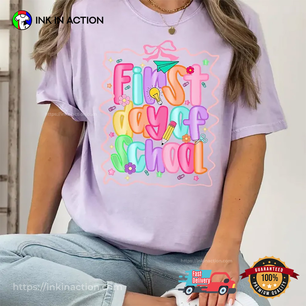 Preppy First Day Of School Coquette Teacher Comfort Colors T-shirt