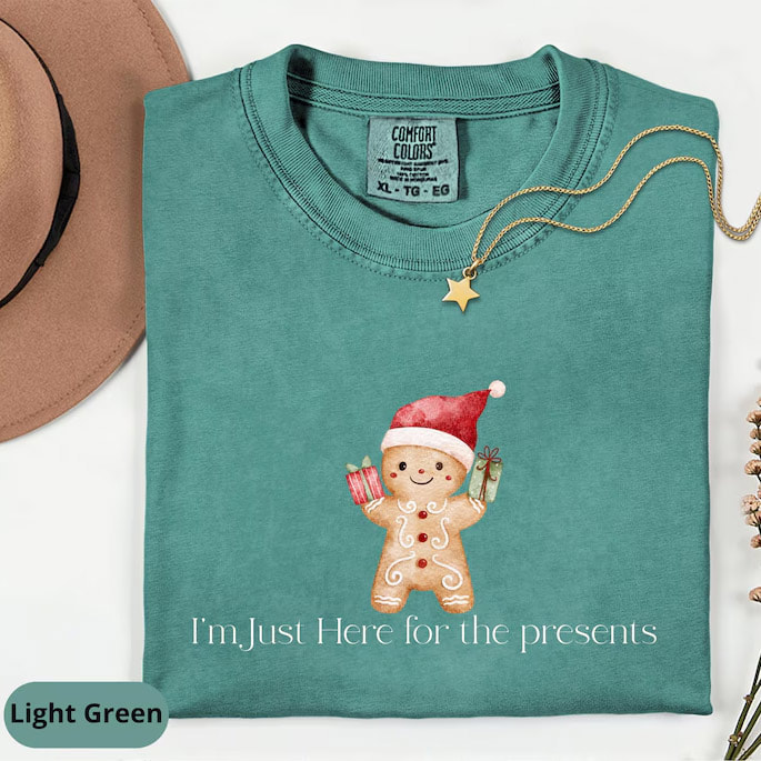 Upgrade your wardrobe with our I’m Just Here For The Present Funny Christmas Gingerbread Comfort Colors Shirt, a fully customizable tee crafted with 100% ring-spun cotton. This tee is not only about style but also about ultimate comfort. The soft-washed, garment-dyed fabric ensures extra coziness, making it your go-to choice for everyday wear.