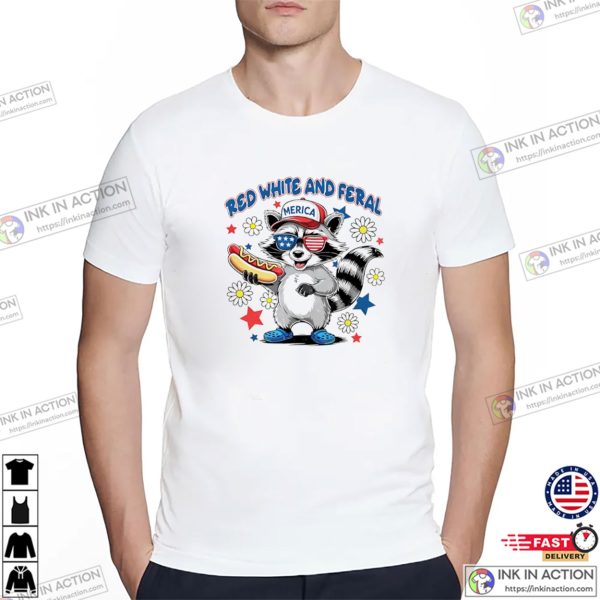 Are you ready to celebrate the holiday season with style and ease? Look no further! Our Red White And Feral Raccoon Happy Independence Day T-shirt, printed right here in the USA, offers affordable and practical options that will make your life stress-free and your celebrations unforgettable.