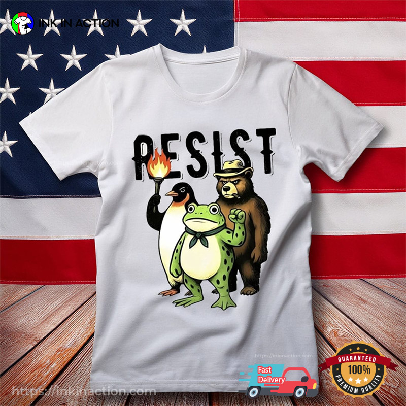 Show your spirit and stand tall with our Resist Animal Protest T-shirt — “Ribbit for Resistance!” Featuring the iconic frog symbol of unity and defiance, this tee blends bold street style with a message of empowerment. Crafted from soft, breathable cotton, it’s perfect for rallies, casual days, or anyone proud to stand for Portland’s resilient voice.