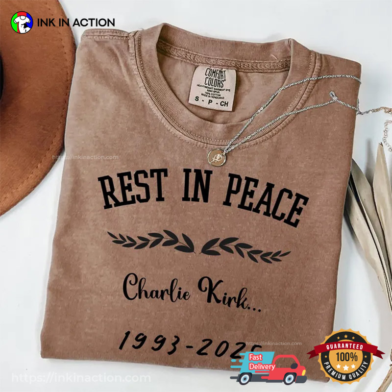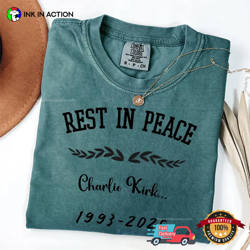This Rest In Peace Charlie King Comfort Colors T-shirt is categorized as tags: Charlie Kirk Shot Dead, Rip Charlie Kirk, Turning Point USA.