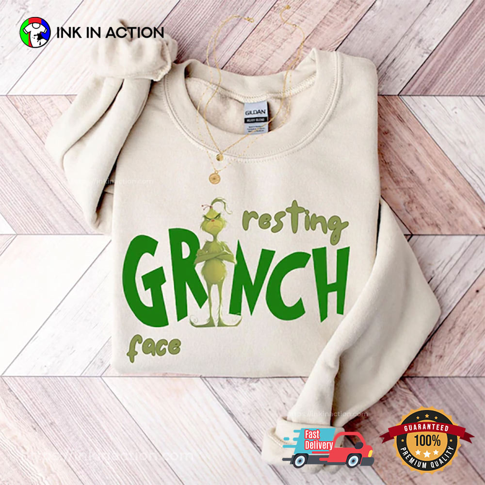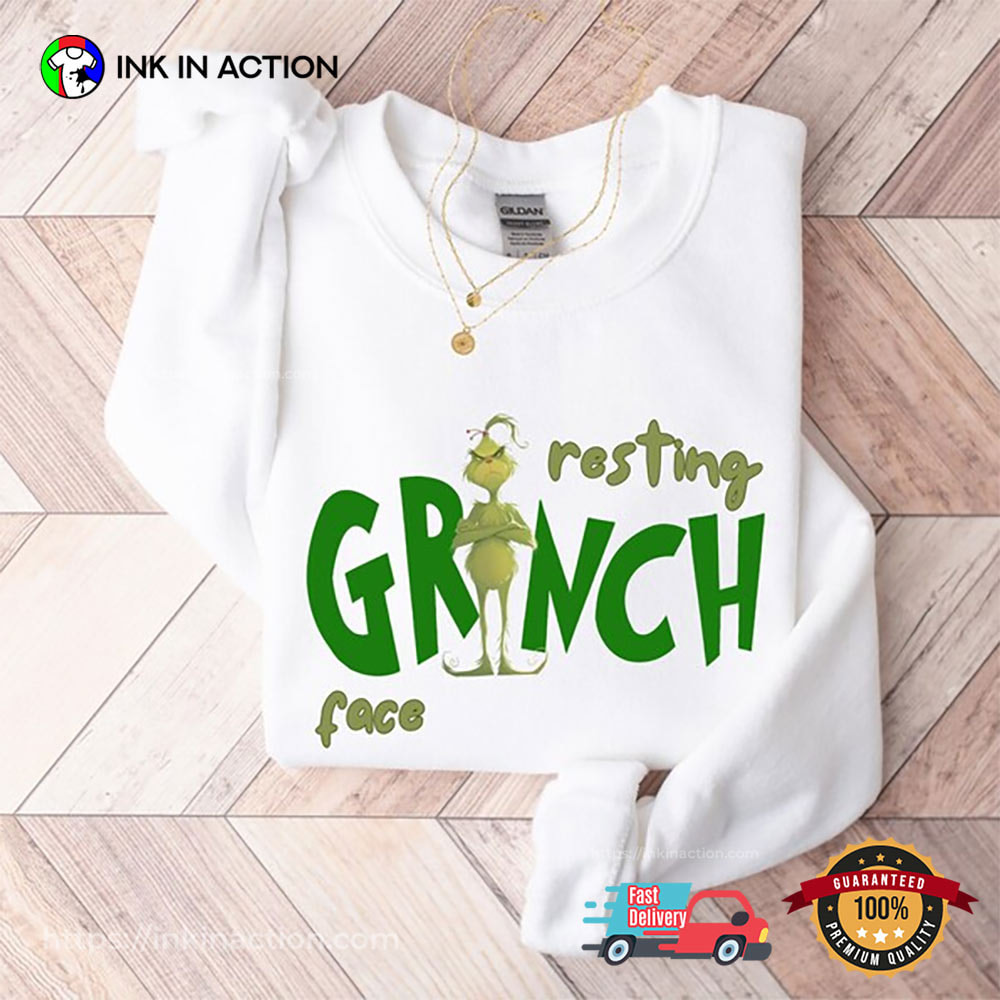 Welcome to InkInAction.com, where the magic of Christmas meets the enchantment of Disney. Our collection of Resting Grinch Face Funny Christmas Shirt is designed to infuse your festive season with joy and warmth. Proudly printed in the USA, these T-shirts are not just garments; they’re expressions of holiday cheer, family togetherness, and the beloved characters that have warmed our hearts for generations.