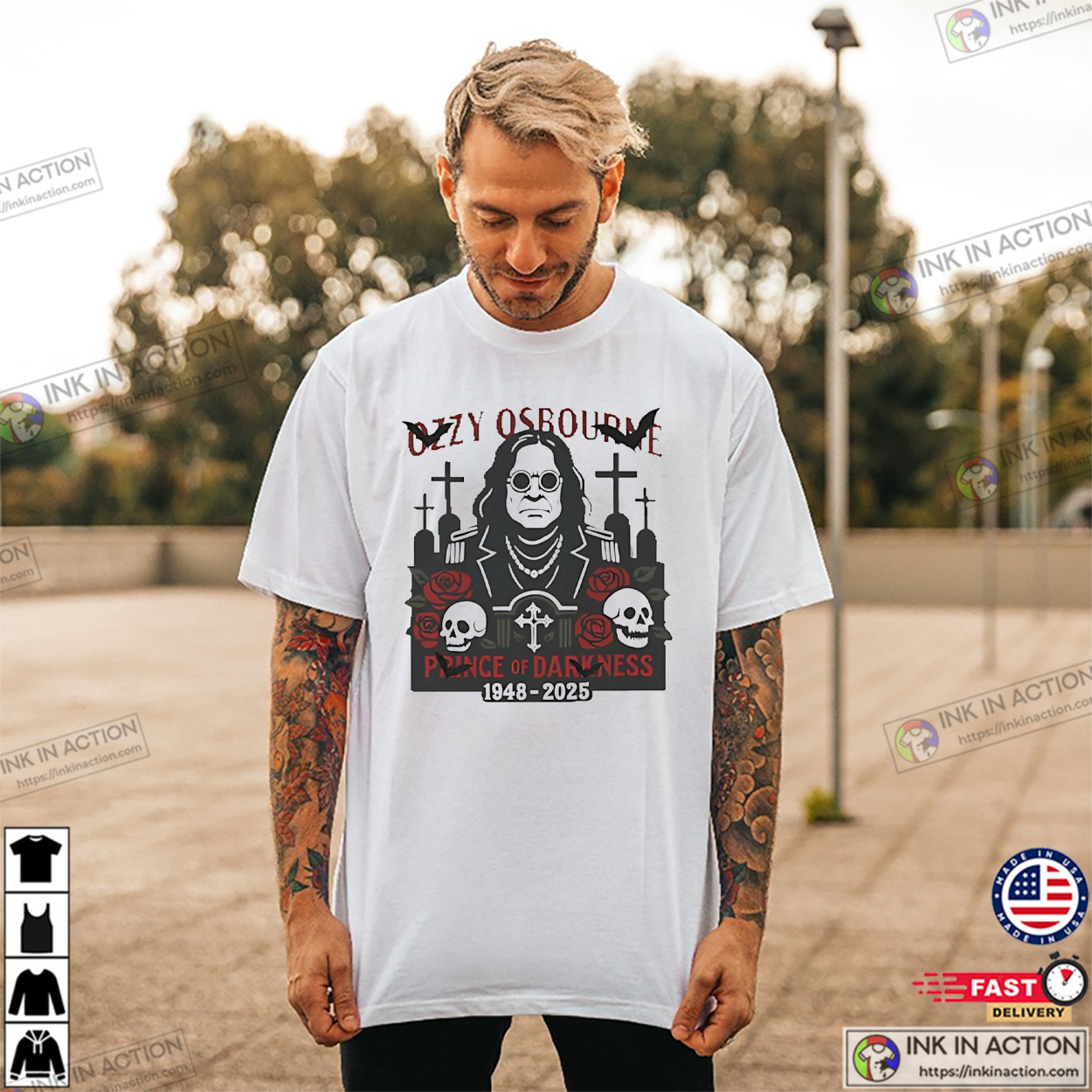 Honor the Prince of Darkness with the RIP Ozzy Osbourne 1948-2025 Prince Of Darkness Shirt – a heartfelt tribute to the legendary rock icon’s enduring legacy. Featuring powerful graphics like Ozzy’s silhouette, iconic bat imagery, or memorial dates, this shirt is crafted from soft, breathable cotton for ultimate comfort.
