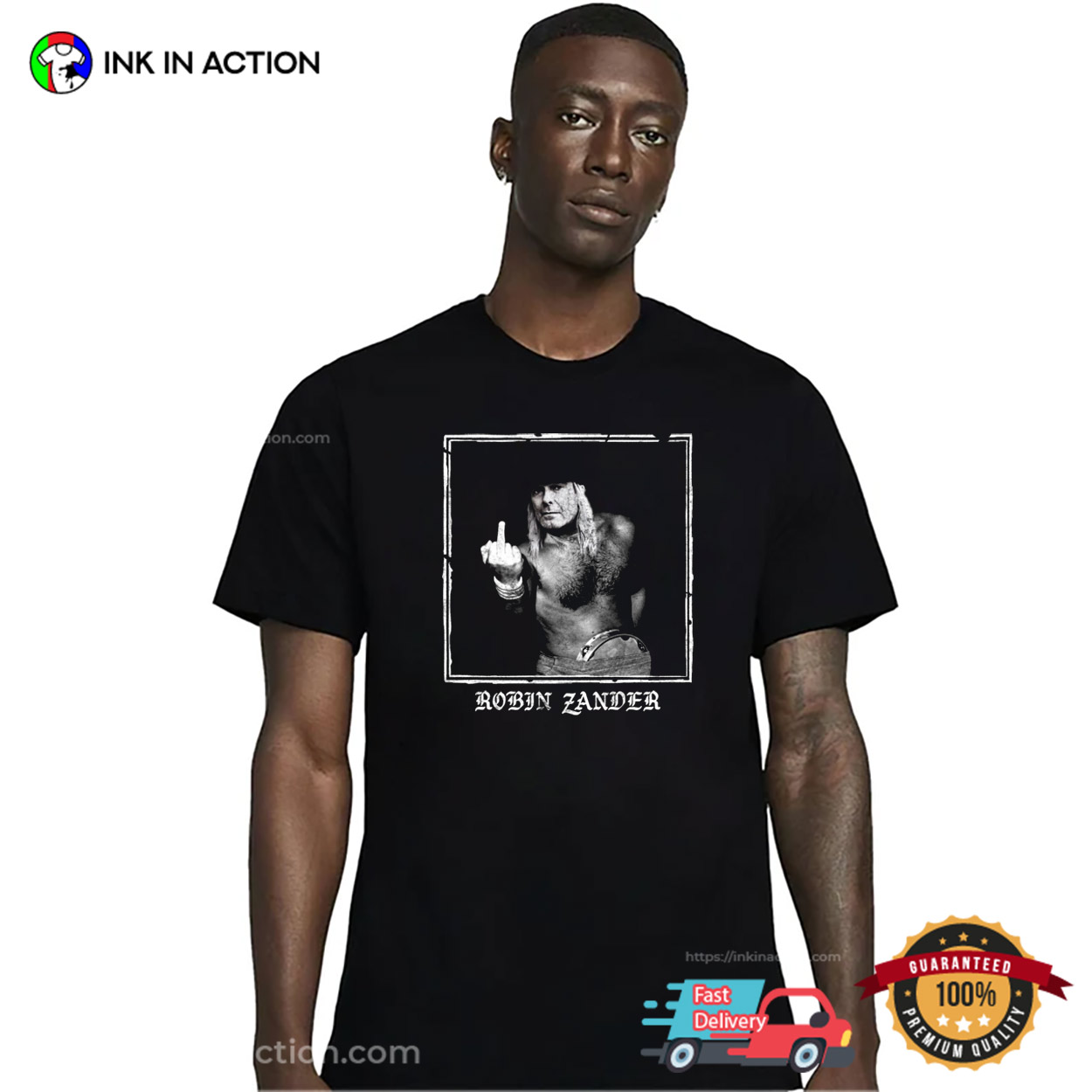 Attention music lovers, let’s check out our Robin Zander Middle Finger Funny Shirt, proudly printed in the USA by InkInAction.com. With its unique and eye-catching design, this shirt is sure to turn heads and start conversations.