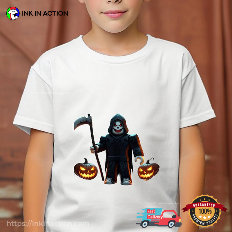Let’s start with our cute Roblox Halloween Spooky Reaper T-shirt, which is perfect for adding a touch of whimsy to your holiday wardrobe. From adorable pumpkins to friendly ghosts, these shirts are sure to bring a smile to your face and delight those around you. Whether you’re trick-or-treating with the kids or attending a Halloween party, our cute designs are a must-have.