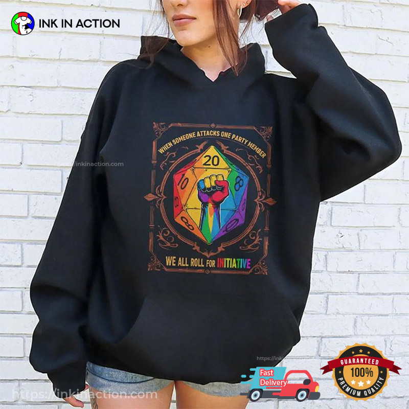 Show your true colors with a We All Roll For Initiative DnD LGBTQ Pride T-shirt that celebrates love, identity, and equality. Featuring rainbow designs, empowering slogans, and inclusive graphics, it’s made from soft, breathable fabric for all-day comfort. Perfect for Pride events or everyday expression. Be loud, be proud—wear who you are with pride!