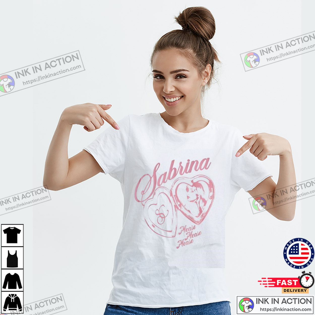Attention music lovers, let’s check out our Sabrina Carpenter Please Please Please T-shirt, proudly printed in the USA by InkInAction.com. With its unique and eye-catching design, this shirt is sure to turn heads and start conversations.