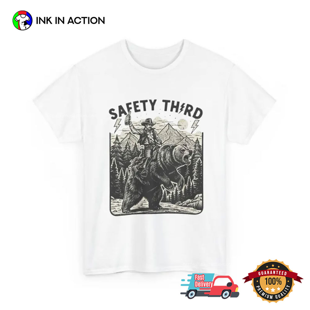 Stay ahead of the trend with the Safety Third Funny Retro Grizzly Bear Tee, perfect for fans of viral humor and internet culture. Made from soft, breathable fabric, this comfortable tee features a funny, eye-catching meme design that captures the jokes everyone’s talking about right now.