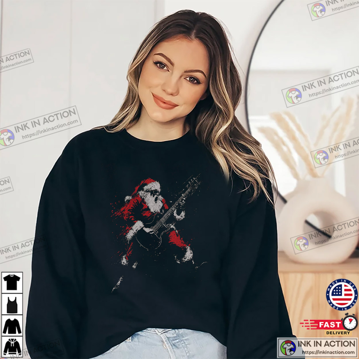 Santa Playing Guitar, 90s Christmas Rock Shirt
