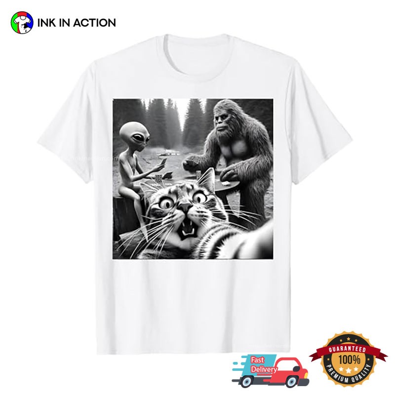 Sasquatch Bigfoot Alien Funny Selfies Retro T-shirt