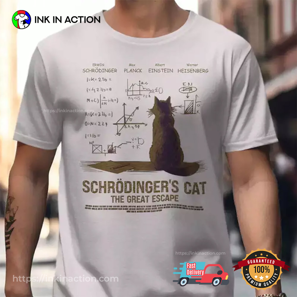 Schrodinger’s Cat The Great Escape Funny Physics Meme T-shirt🐱📦