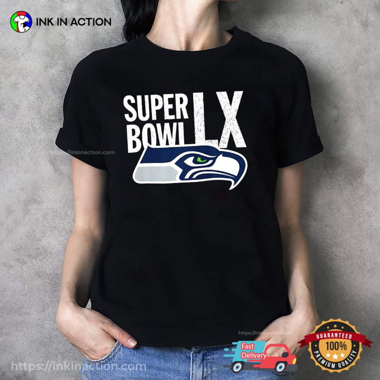 Celebrate a legendary playoff run with the Seattle Seahawks 2026 Super Bowl LX shirt, crafted from soft, breathable fabric and featuring bold championship-inspired graphics in iconic Seahawks colors, perfect for loyal fans, game days, watch parties, or showing pride in Seattle’s NFC dominance.