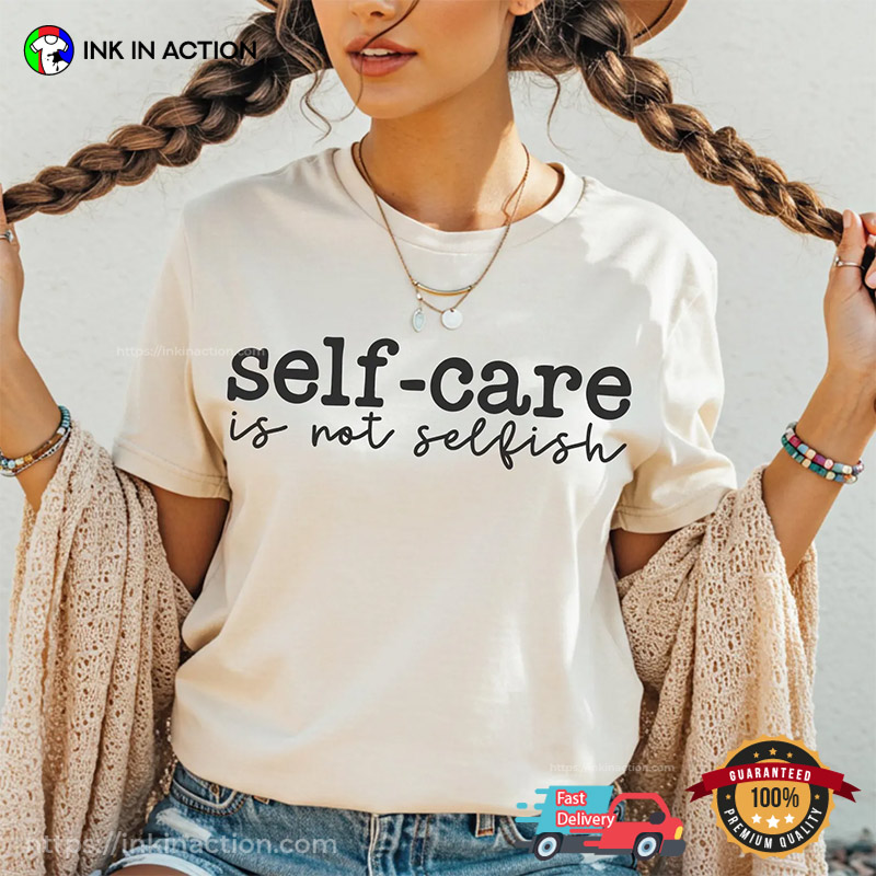 Self-care Is Not Selfish Mental Health Quotes T-shirt: Wellness Worn with Intention