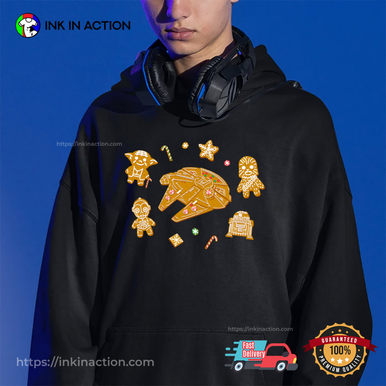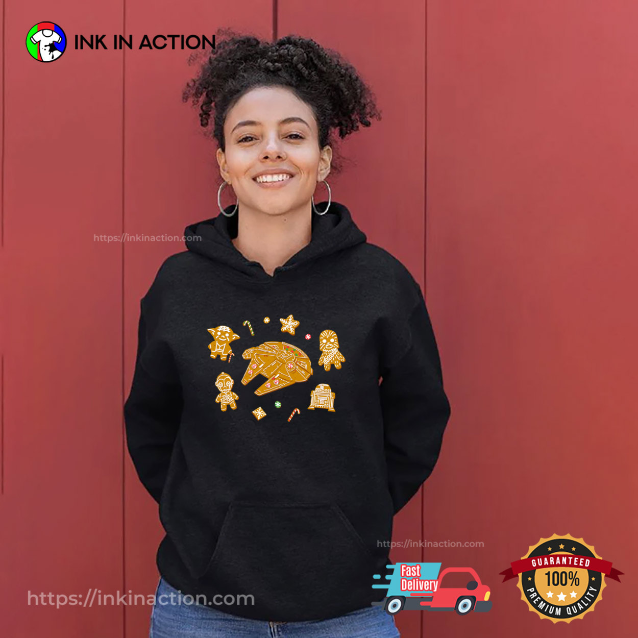 If you are looking for the perfect Christmas gift, look no further than Ink In Action’s Star Wars Christmas Gingerbread Cookies Graphic Shirt!