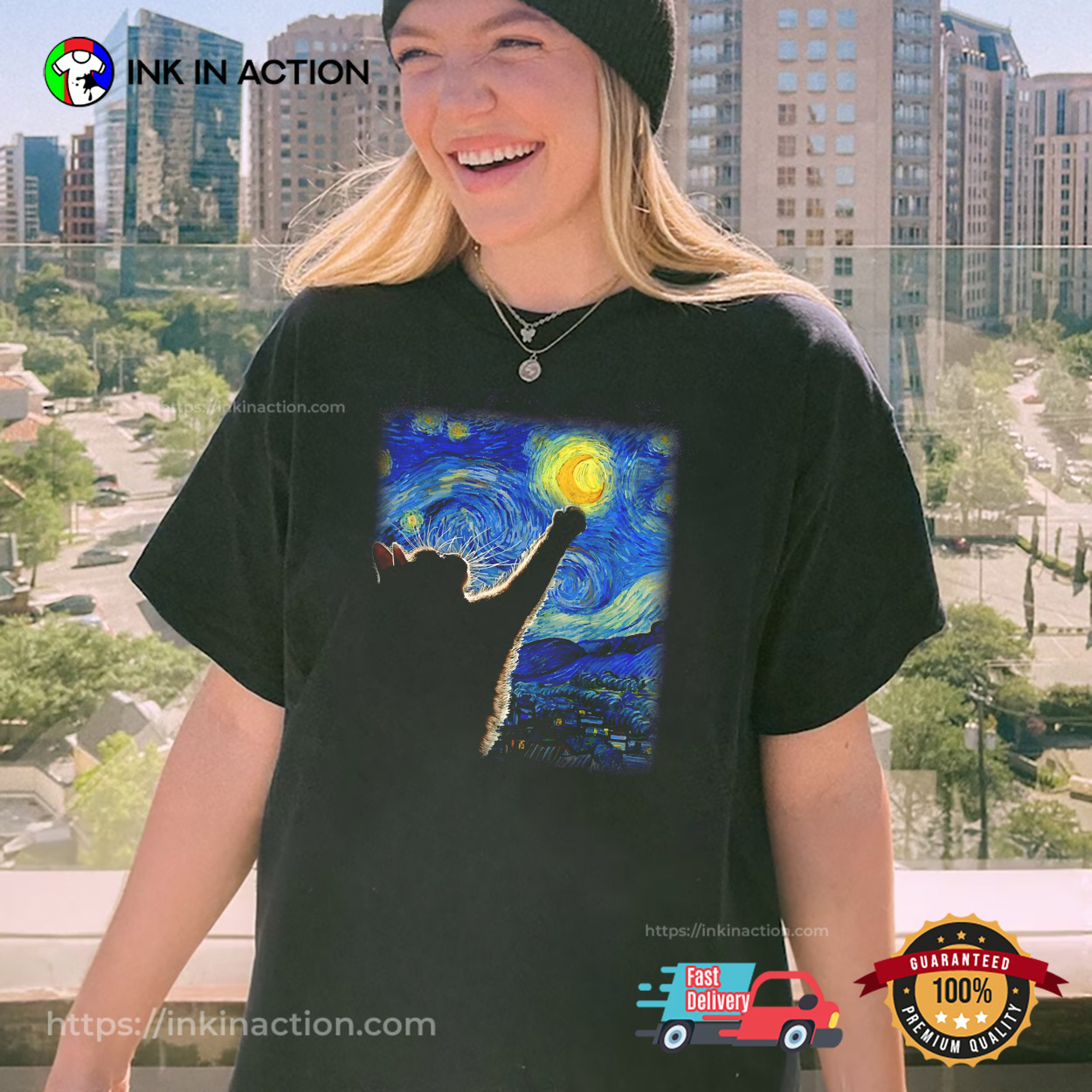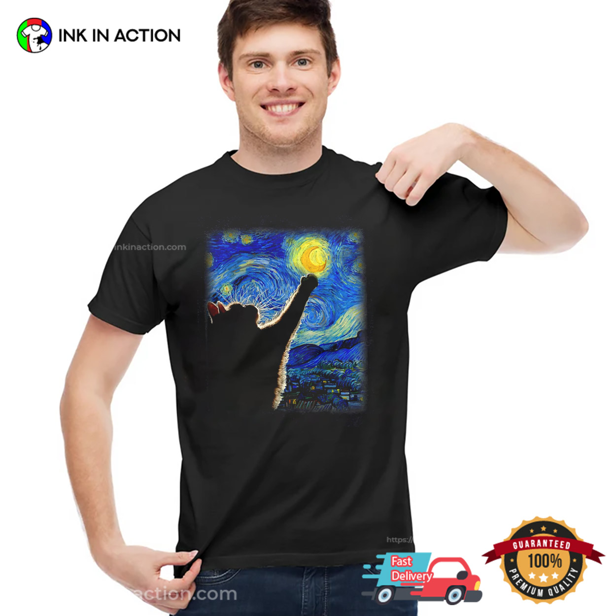 Starry Night Cat Playing Moon Funny T-shirt: Purrfection You Can Wear!