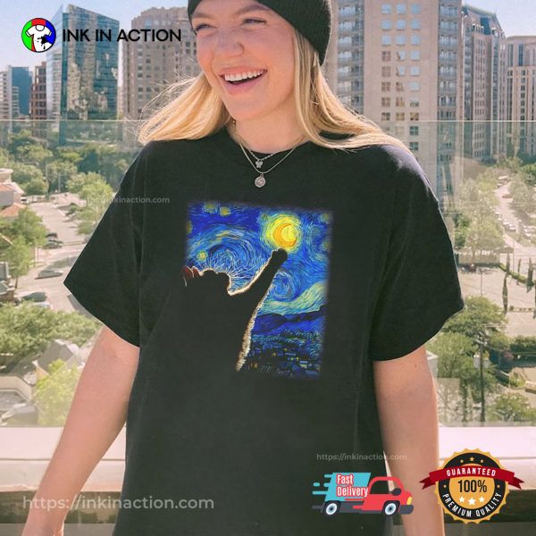 Are you ready to celebrate the holiday season with style and ease? Look no further! Our Starry Night Cat Playing Moon Funny T-shirt, printed right here in the USA, offers affordable and practical options that will make your life stress-free and your celebrations unforgettable.