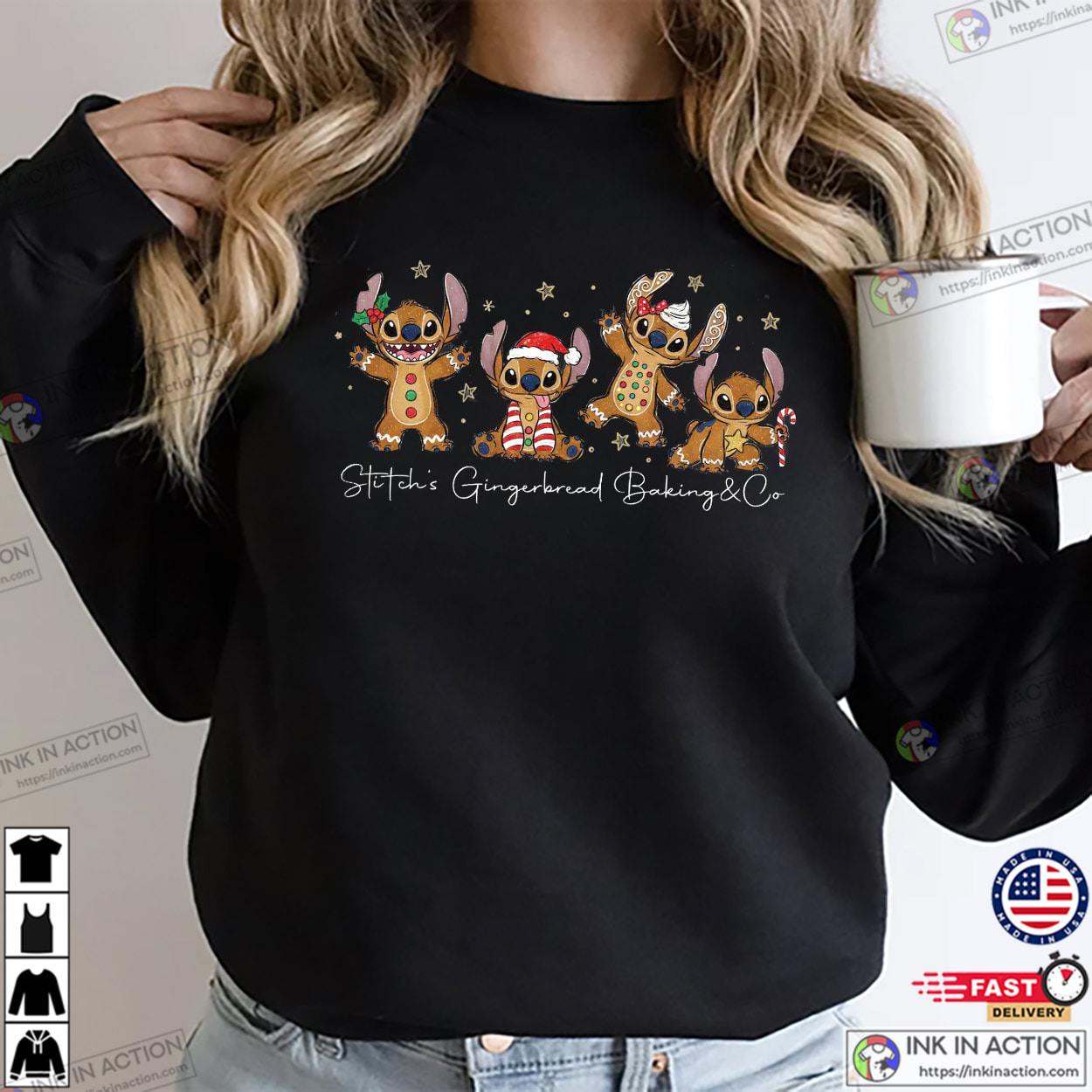 Welcome to InkInAction.com, where the magic of Christmas meets the enchantment of Disney. Our Stich’s Gingerbread Baking & Co Funny Xmas T-shirts is designed to infuse your festive season with joy and warmth. Proudly printed in the USA, these T-shirts are not just garments; they’re expressions of holiday cheer, family togetherness, and the beloved characters that have warmed our hearts for generations.