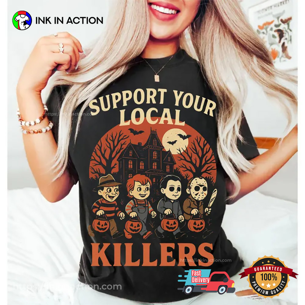 Are you ready to step into the spooky season with style and flair? Look no further than our Support Your Local Killers Characters Halloween T-shirt at InkInAction.com! With a wide range of designs and styles, we’ve got something for everyone to enjoy this Halloween.
