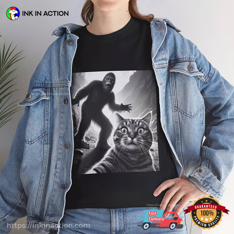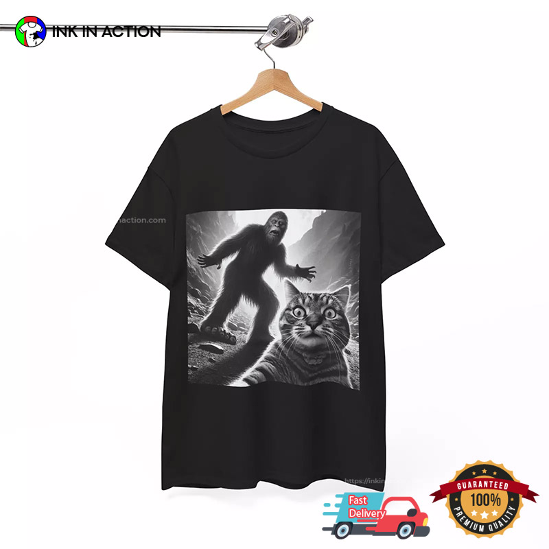 In the ever-evolving fashion world, staying on trend is not just a choice; it’s a statement. Our Surprised Scared Cat Selfie With Sasquatsch Funny T-shirt are more than garments; they are canvases of self-expression, reflecting the spirit of the times. We understand that fashion is a language, and our trending shirts speak volumes.