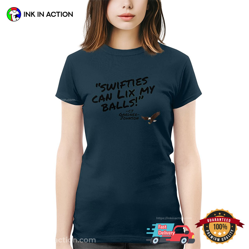 In the ever-evolving fashion world, staying on trend is not just a choice; it’s a statement. Our Swifties Can Lix My Balls Gardner-Johnson Funny Tee is more than garments; they are canvases of self-expression, reflecting the spirit of the times. We understand that fashion is a language, and our trending shirts speak volumes.