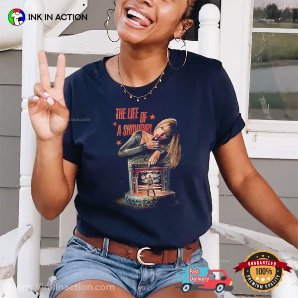 Attention music lovers, let’s check out our Taylor Swift The Life Of A Showgirl Album Portrait T-shirt, proudly printed in the USA by InkInAction.com. With its unique and eye-catching design, this shirt is sure to turn heads and start conversations.