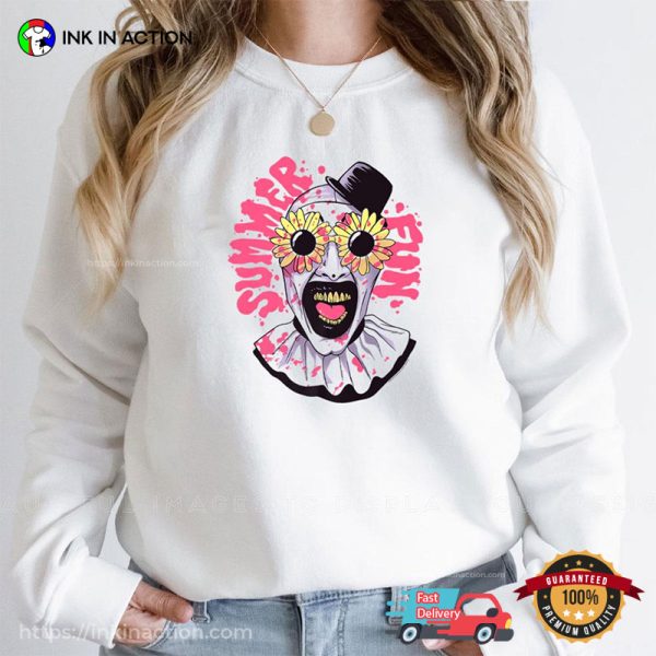 In the ever-evolving fashion world, staying on trend is not just a choice; it’s a statement. Our Terrifier Summer Fun, Clown Horror Movie T-shirt is more than garments; they are canvases of self-expression, reflecting the spirit of the times. We understand that fashion is a language, and our trending shirts speak volumes.